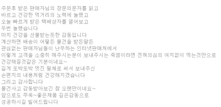 택배 받고 이러한 소중한 구매평 올려 주시면 저희도 감동 받고 더 좋은 제품으로