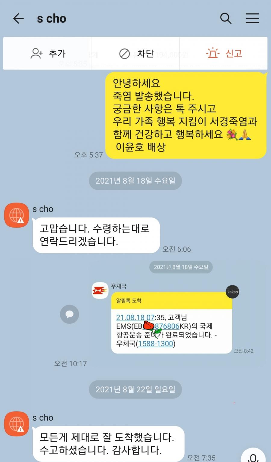 8월은 해외 배송이 3건 있었습니다.