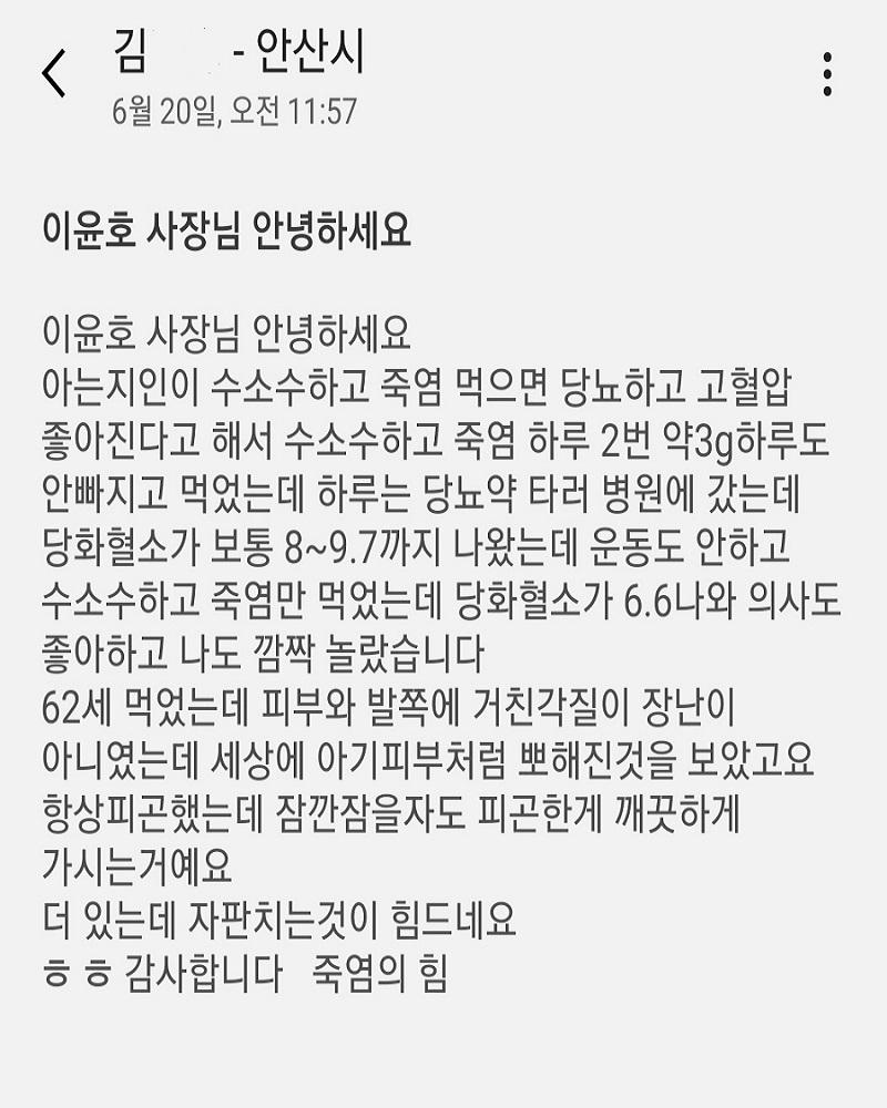 재 구매 후 보내 준 죽염섭취 후 당화 혈색소 변화 수치